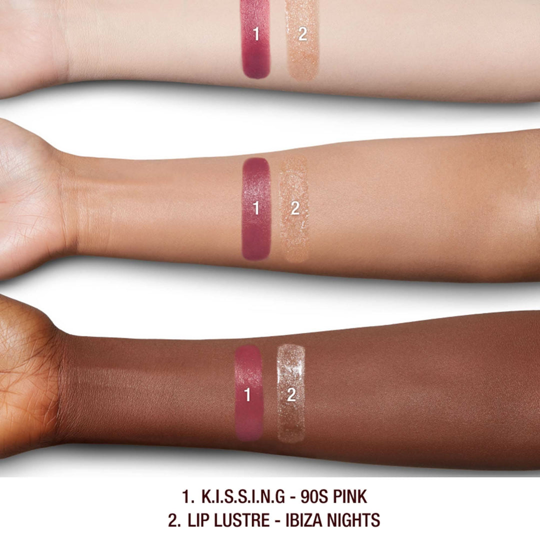 Charlotte Tilbury's K.I.S.S.I.N.G formula delivers a soft-satin shine finish, while Lip Lustre gloss adds a high shine lacquer for fuller-looking lips that wow. Available in two dreamy shade duos, this versatile set is perfect for any occasion.