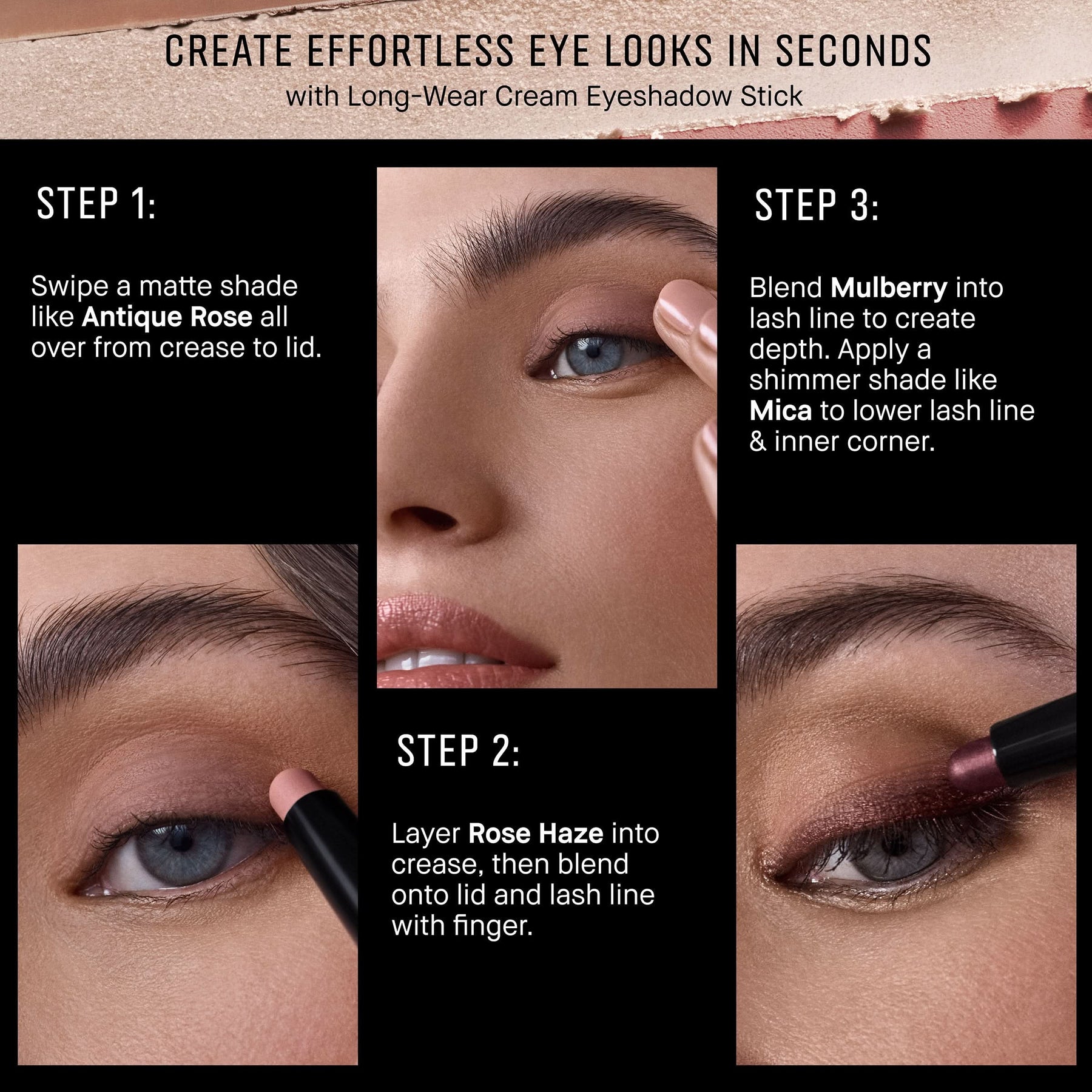 Swipe across lids and blend with fingertips for instant color