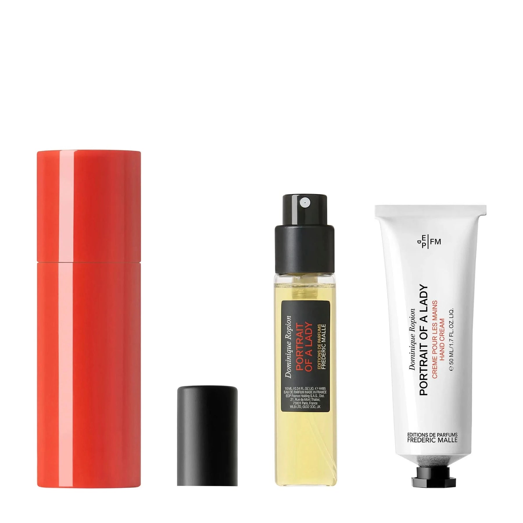 This limited edition Portrait of a Lady set contains a 10 ml perfume spray, a red perfume case and a 50 ml hand cream.