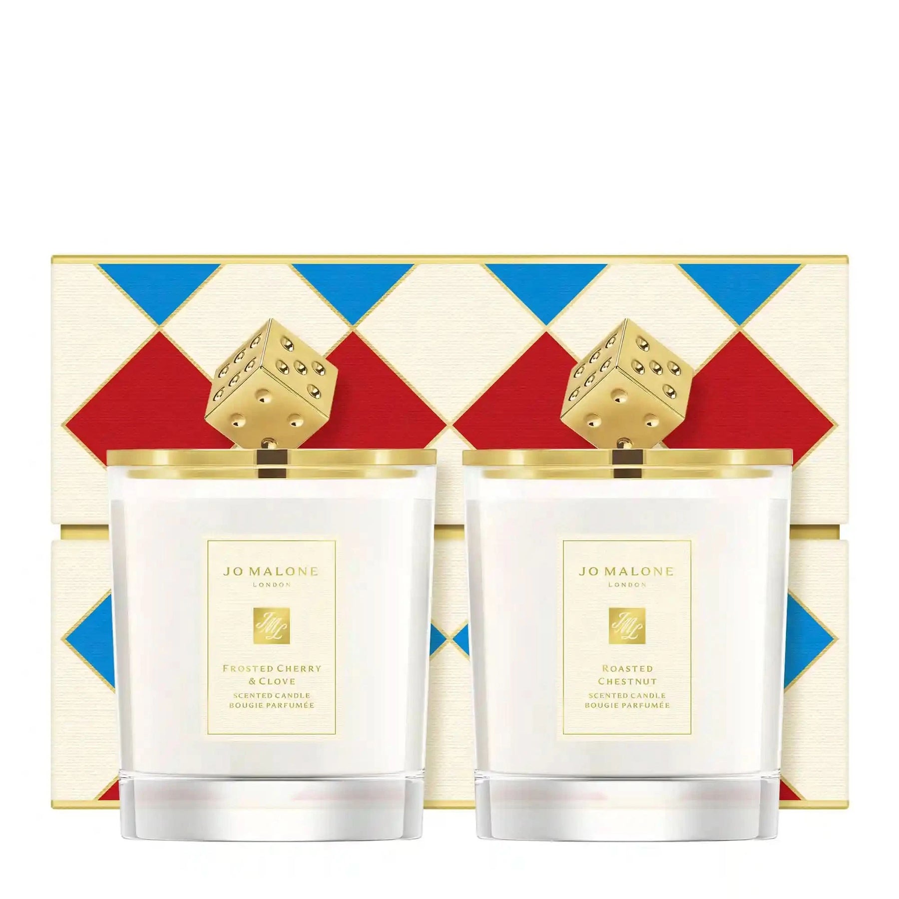 Create the perfect Christmas atmosphere in your home, or theirs. Set a cosy scene with rich, delectable Roasted Chestnut and a warm, comforting mood with succulent Frosted Cherry & Clove. Finished with gold-toned lids and wrapped in a colourful gift box.