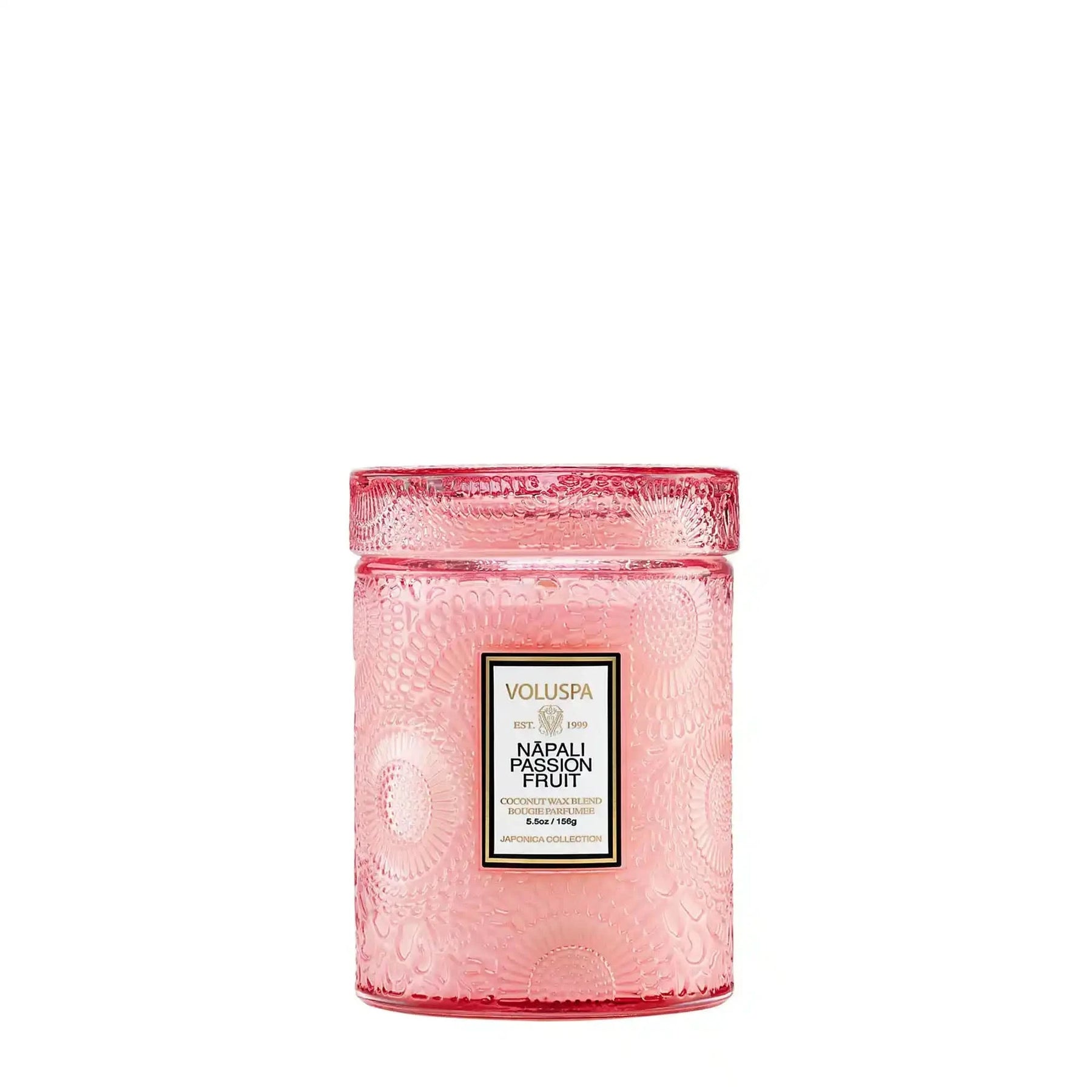 Voluspa's unique coconut wax blend is housed in a 5.5 oz. glass embossed vessel and is topped with a matching lid that keeps the candle dust-free when not in use. The single wick allows you to enjoy fragrance throw for 50 hours.